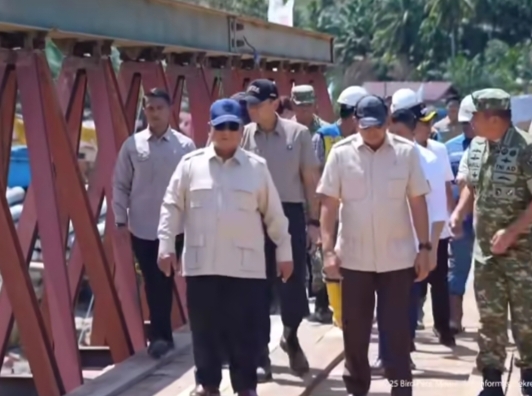 Adab AHY Jalan Bareng Presiden Saat Meninjau Jembatan Bailey di Tapsel